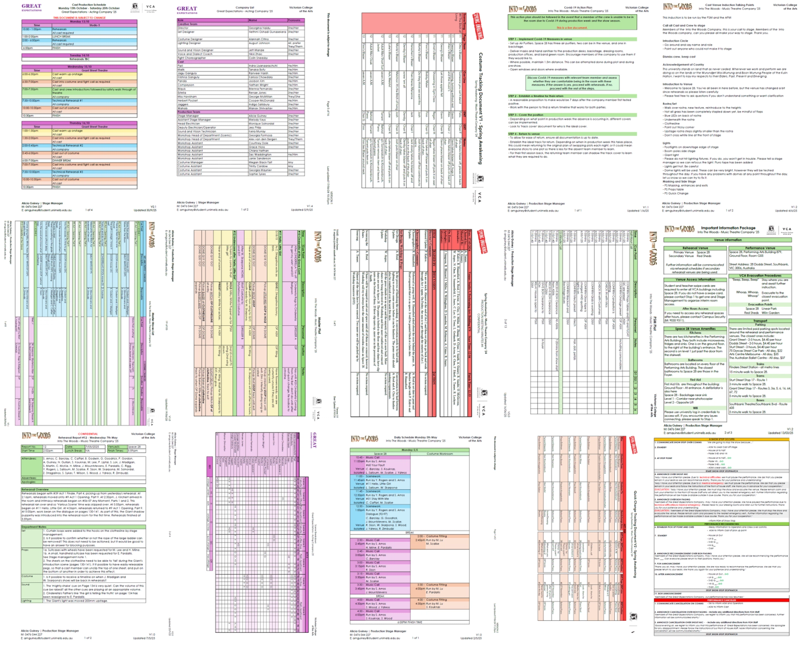 Examples of documentation produced by Alicia Guiney from 'Spring Awakening', 'Into the Woods' and 'Great Expectations'.
