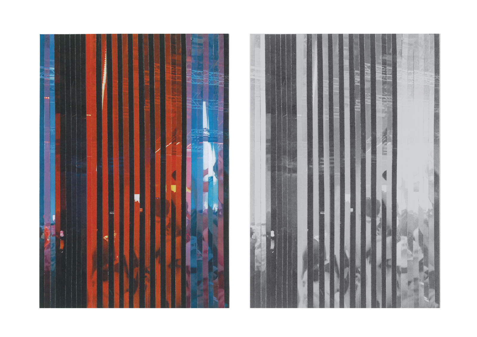 A testament to the moments of colour we experience at live music gigs, each strip of colour reflects a 0.2 second frame from a video - a collage of colour across time.