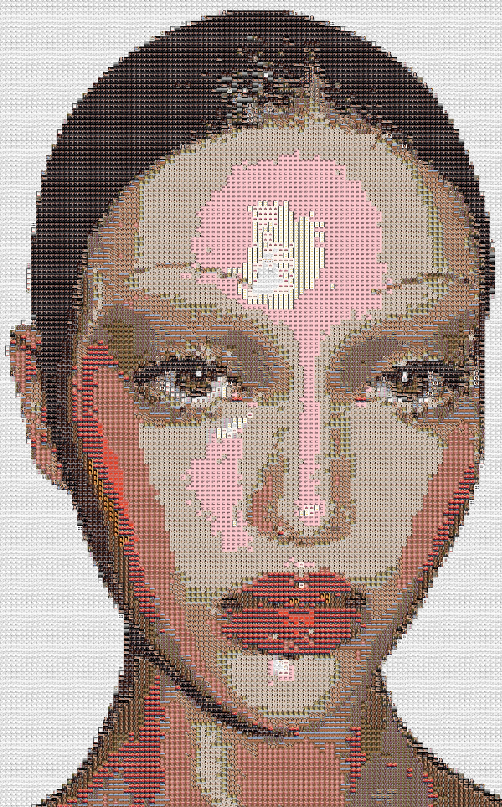 This poster was created using P5.js software and an AI generated instagram model. The image is made up of screenshots from my own instagram explore page to create a pixelated representation of our online consumption culture.