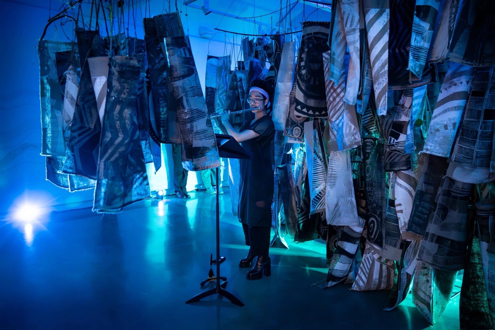 'The Estuary,' music and dance response to the exhibition 'the veil' at Buxton Contemporary, 2025. Flick was a devisor and the Stage Manager in this work about water, cycles, and the forces that shape us.
