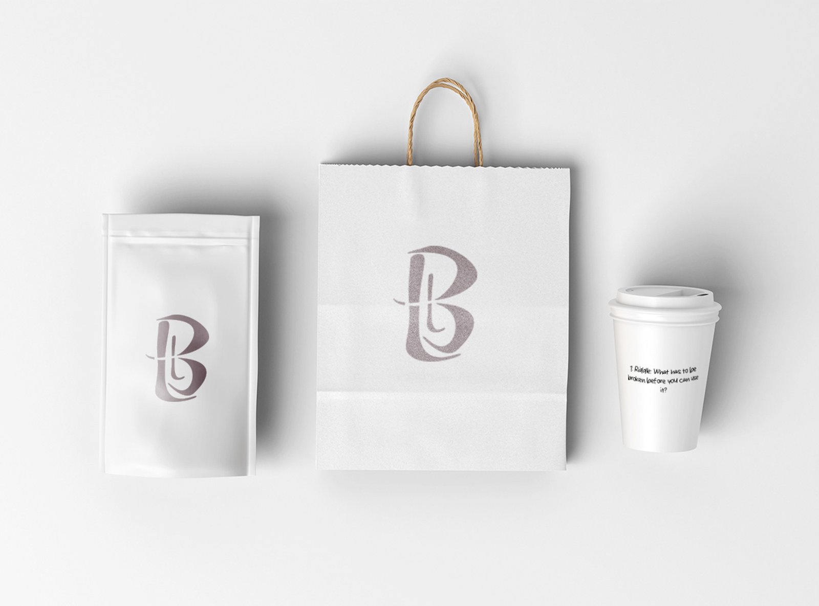 Application of rebranded Little Black Coffee elements (2025). Application of Little Black rebranded elements across different mediums including a coffee bean bag, a carry bag and a coffee cup. The coffee cup includes a unique new element of a similar concept to the Australian classical treat Fantales. This implements little Fantales for the coffees costumers to interact with and influence better connection with the brand and its costumers.