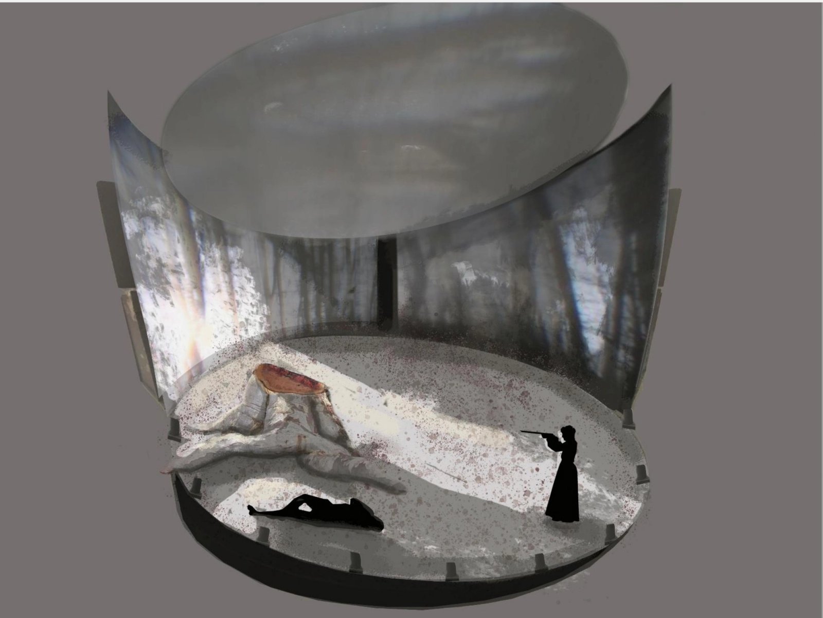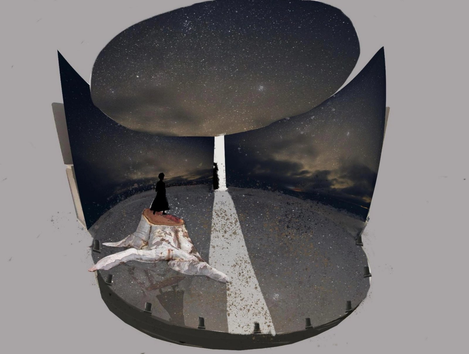 'The Drovers Wife set design', digital render, Space in Performance (2025)