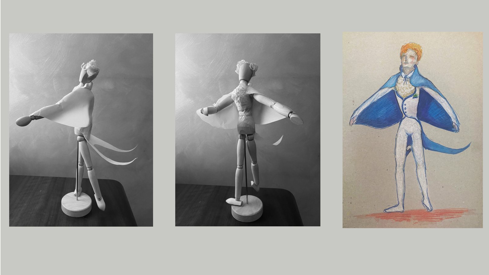 'The Happy Prince costume design', analogue costume model and sketch, The Figure in Performance (2023)