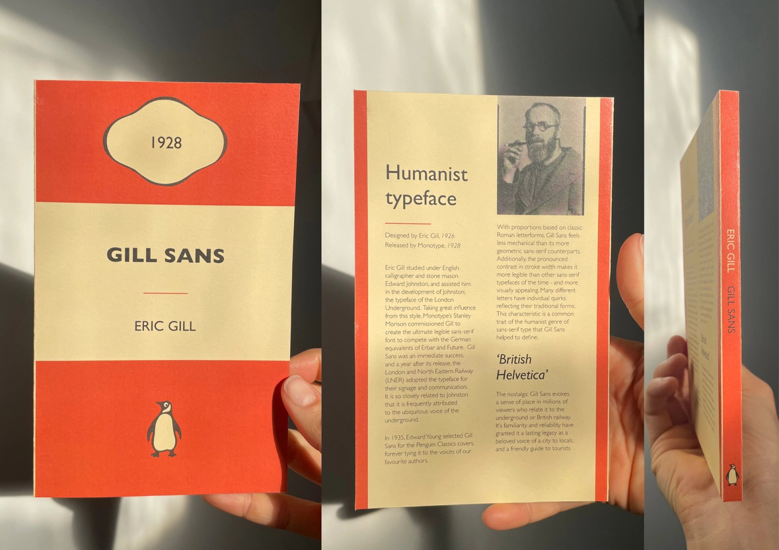 The humble paper-back B-format lets the iconic typeface speak for itself. The book sleeve encases sixteen cards detailing different aspects of the typeface, all in the classic colour scheme of penguin orange and off-white. The cards are printed in a sturdy stock, and can be spread out and examined together or in any order.