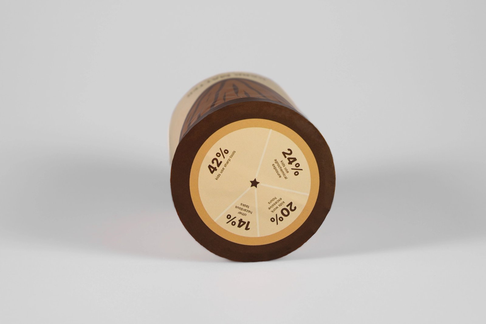 digital print on paper, cylindrical metal container, folded paper