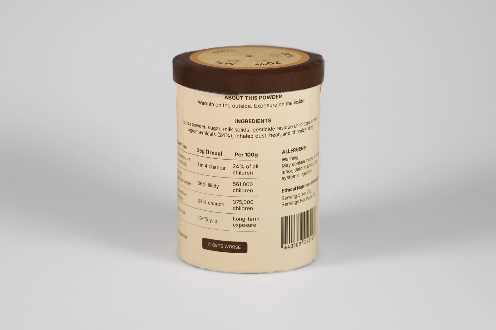 digital print on paper, cylindrical metal container