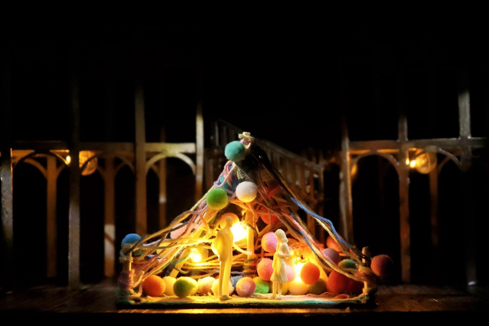The String Room is designed as a fragile sanctuary — built from colorful cotton threads and soft pom-poms, it represents the tenderness of memory and the comfort of love.