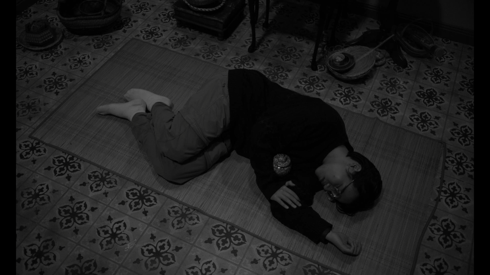 Hand stenciled 4 layers of floor tile design on 4.5x5 meter squared plywood set. The tile was custom-designed to reflect middle-class Hanoi, where the film is set.