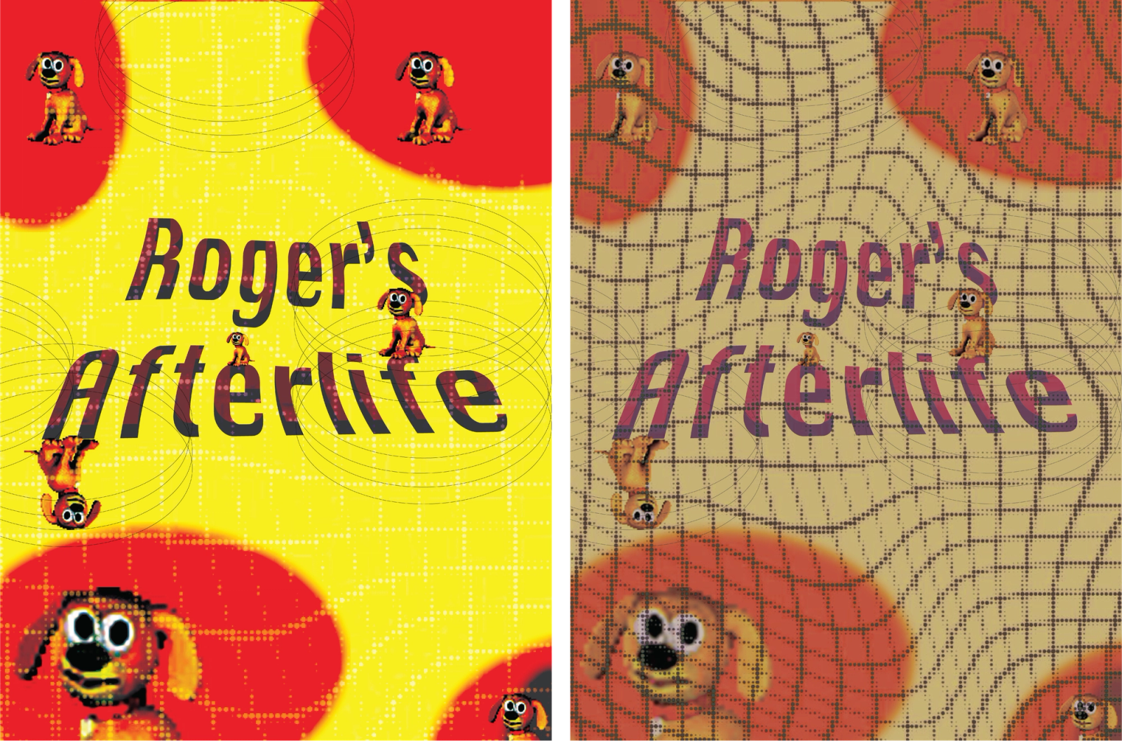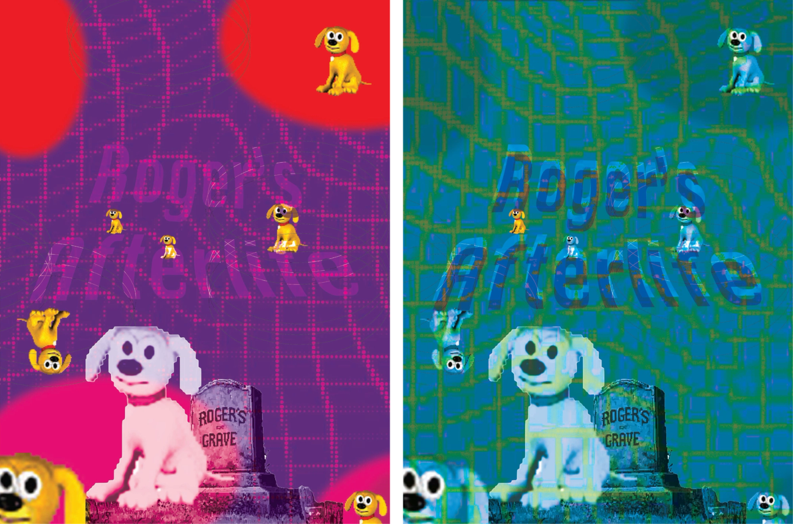 Poster from Roger’s Afterlife. Each iteration visualizes the project’s world — a nostalgic and decaying digital ecosystem where fragments of Roger persist in loops of memory and error.