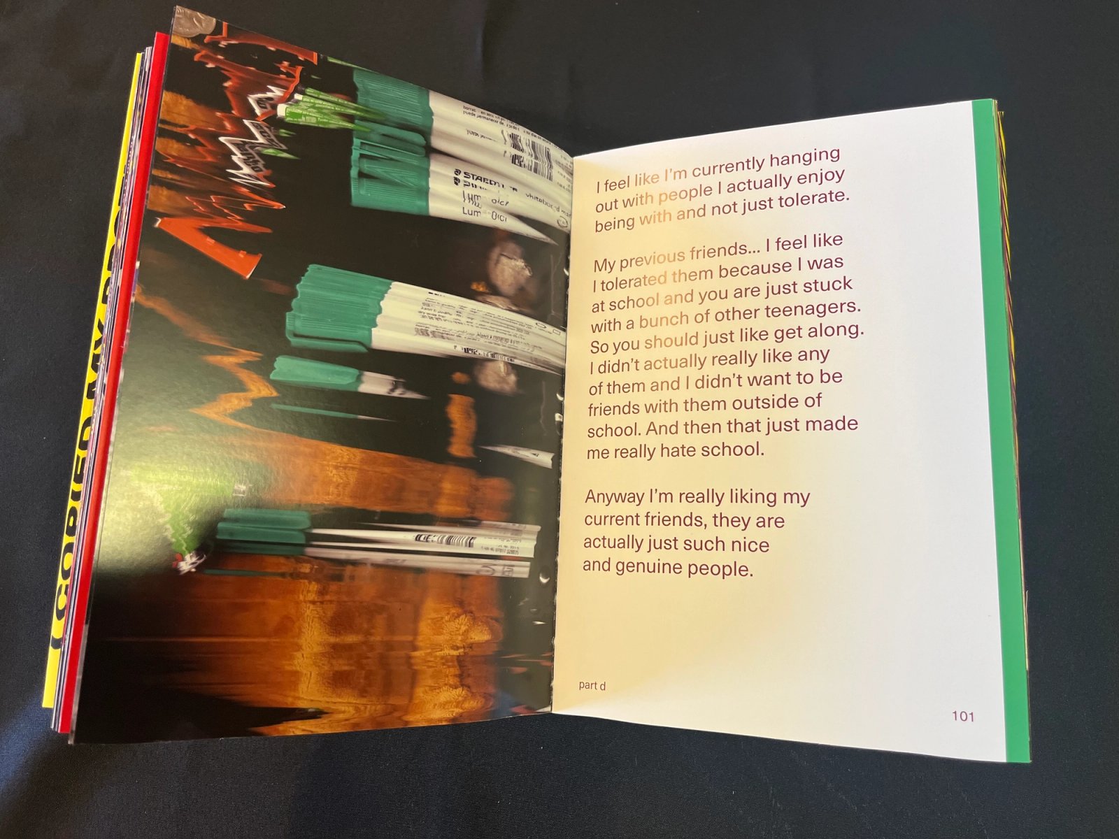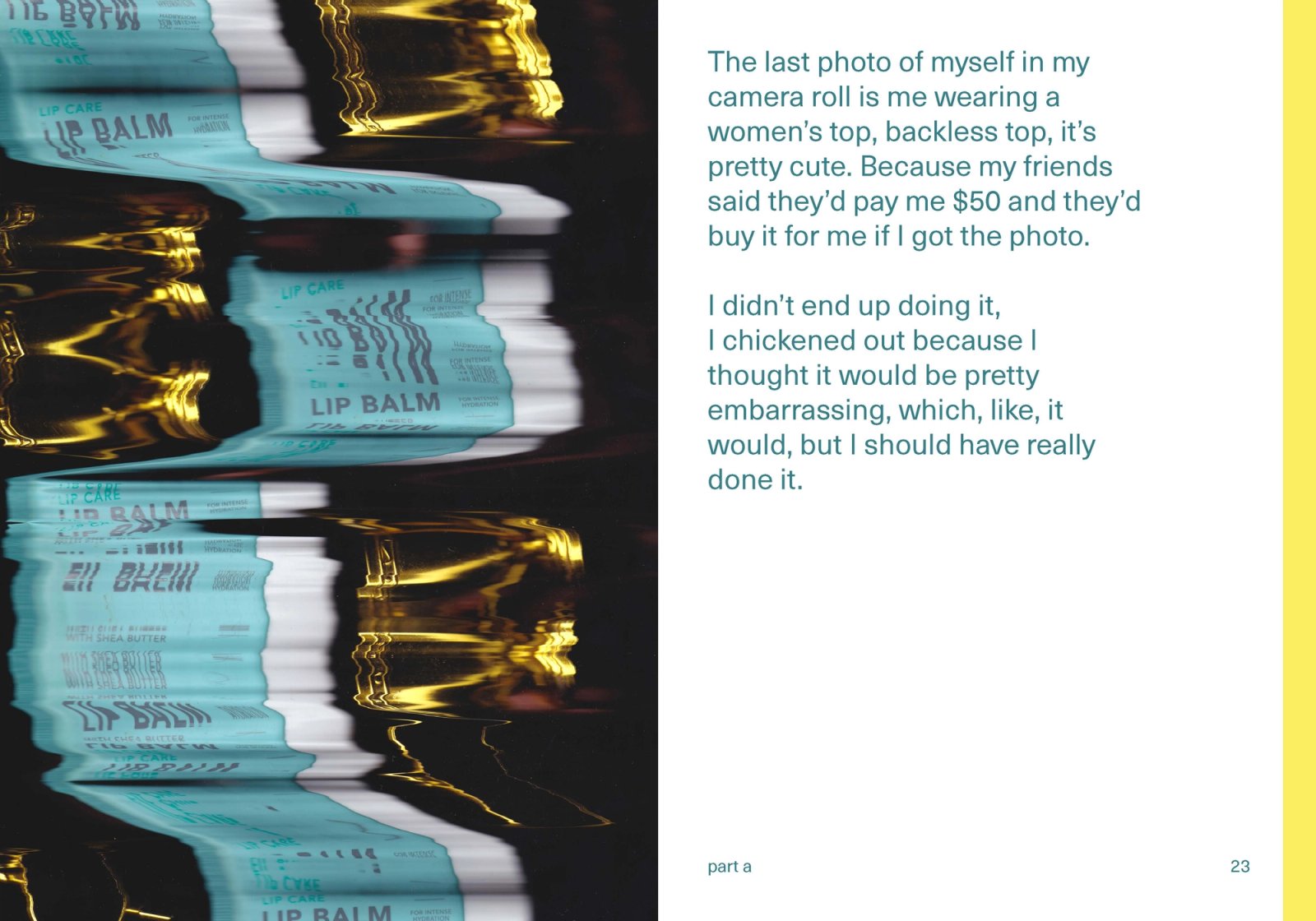 This is funny because I also have a degree in user experience design, though these skills don’t intersect often, I do find myself playing with the literal user experience of a design, whether that be an intentionally overstimulating video, or a book of typewritten word art.