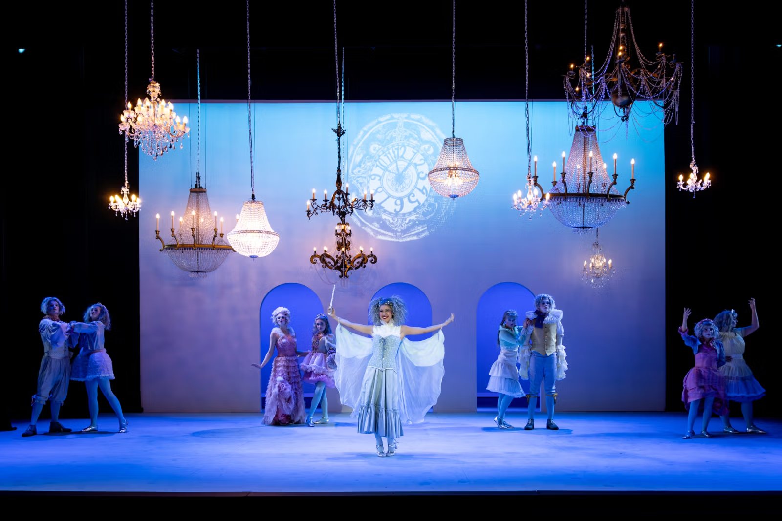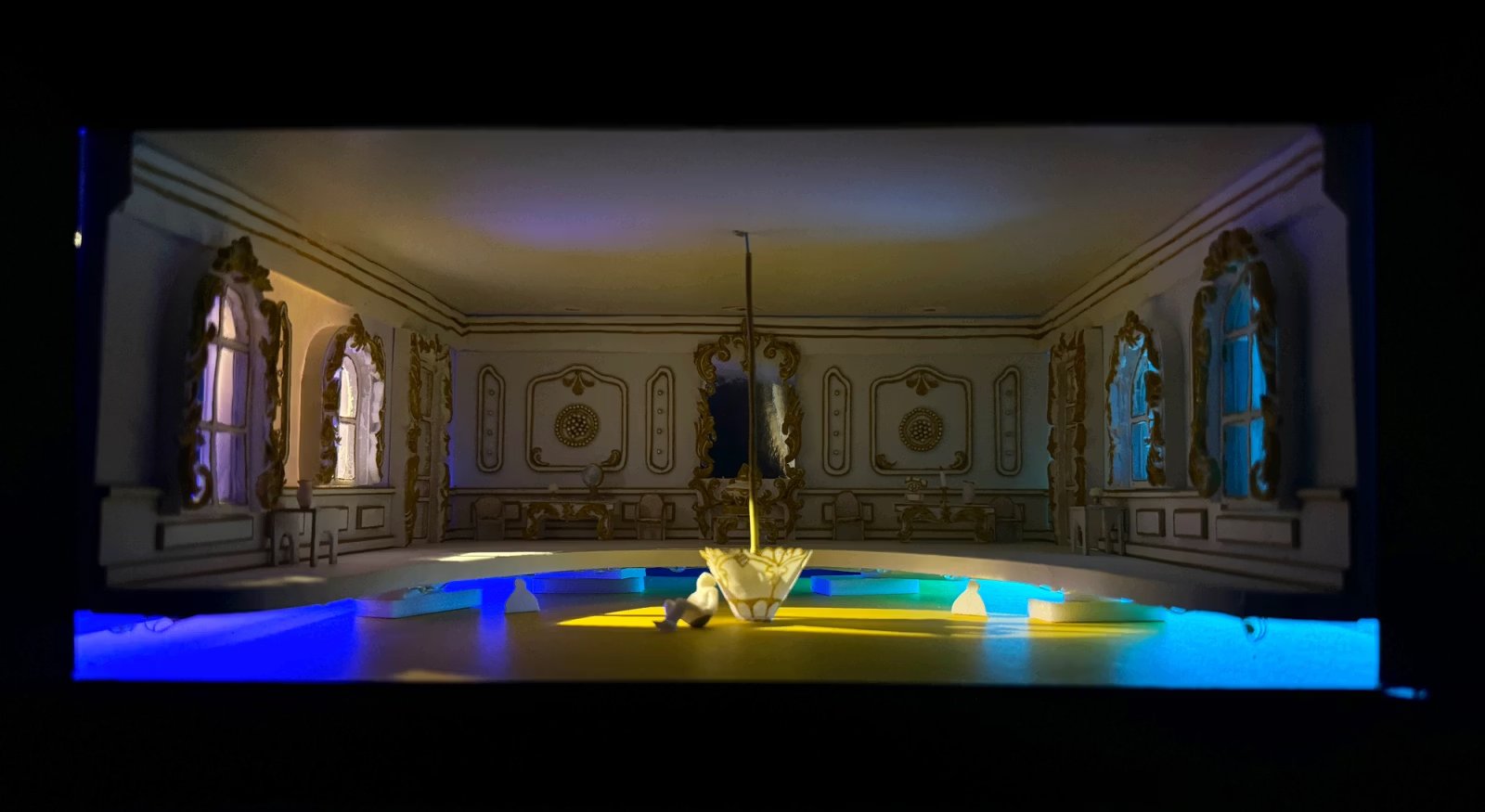 This set, light and projection combined looks almost like a painting. UMAC, the theatre where this was staged, was an integral part of bringing my peers and me out here to Melbourne, to work with the VCA, with Design & Production and to be around your programs, so I have a special relationship with this theatre. My colleague Riski seconded to Richard Vabre, the lighting designer on Cendrillion. I think if we picture a ball, as in Cinderella, we typically think of massive set pieces and an lavish details. I think when we picture a ball in Cinderella, we usually imagine massive set pieces and lavish details. But Ivy Miller took this in a stripped-down direction. Nonetheless, the elements that remain tell the story just right — and the image is powerful.